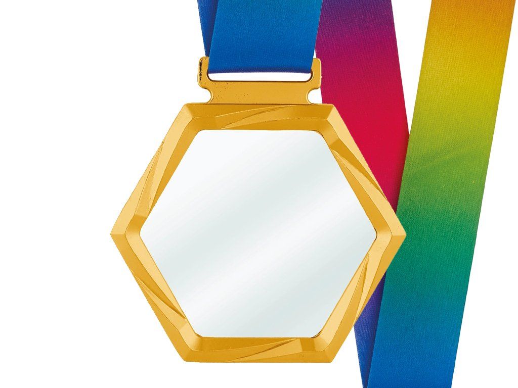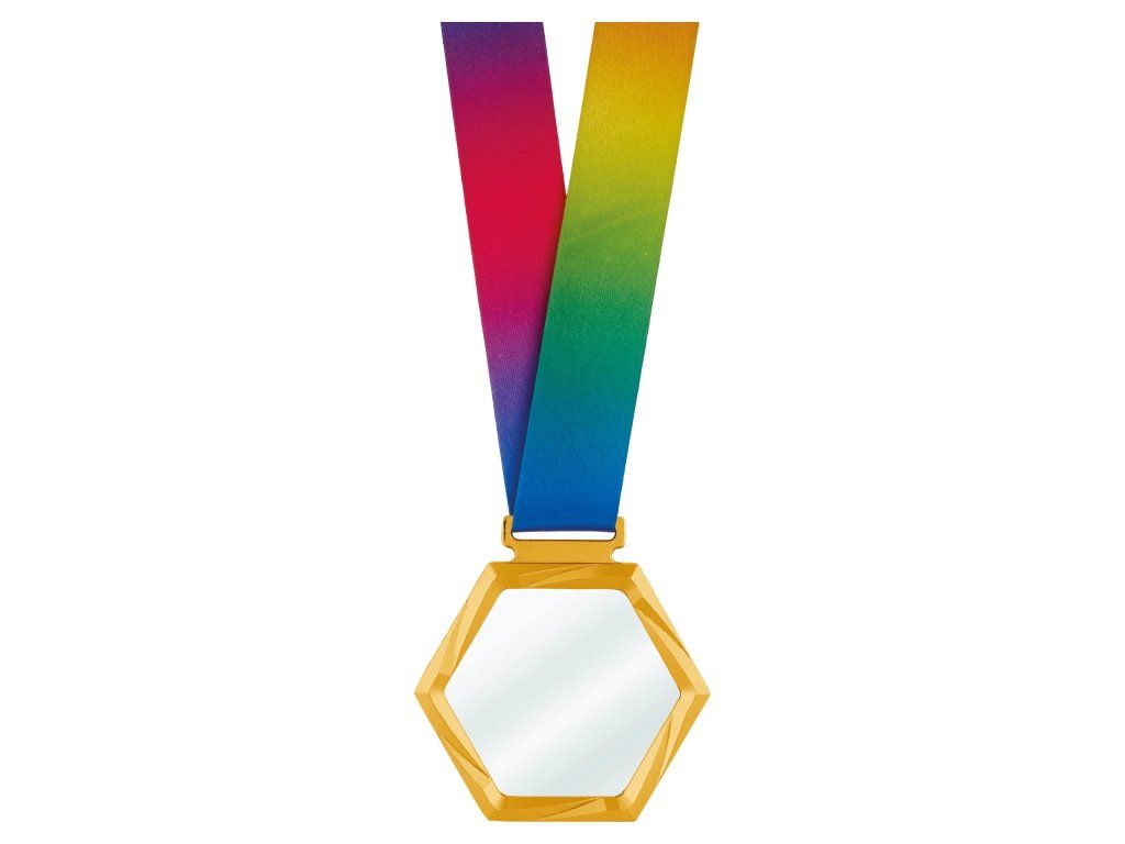 Sklenená medaila CRY167 zlatá v kazete so stuhou - Ø 90 mm