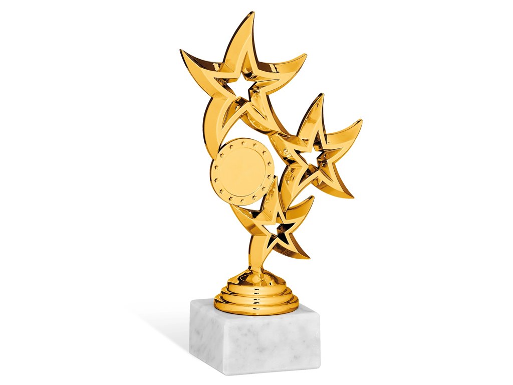 Zlatý, strieborný a bronzový plastový pohár s podstavcom na ktorý je možné umiestniť štítok s textom.