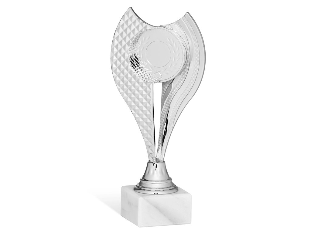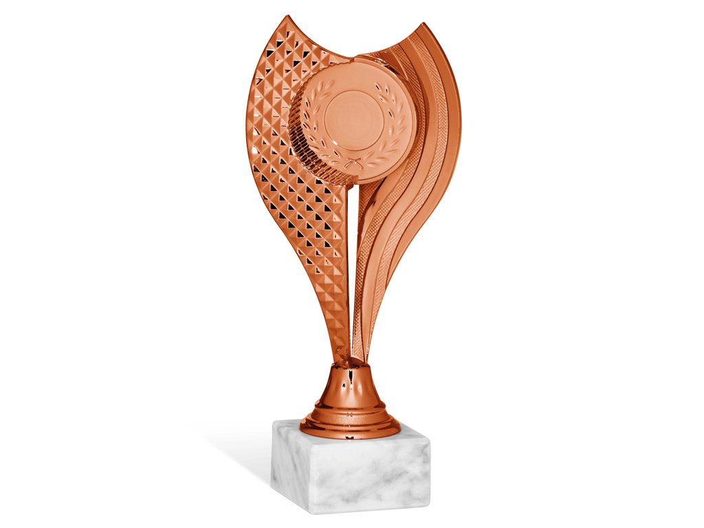 Zlatý, strieborný a bronzový plastový pohár s podstavcom na ktorý je možné umiestniť štítok s textom.