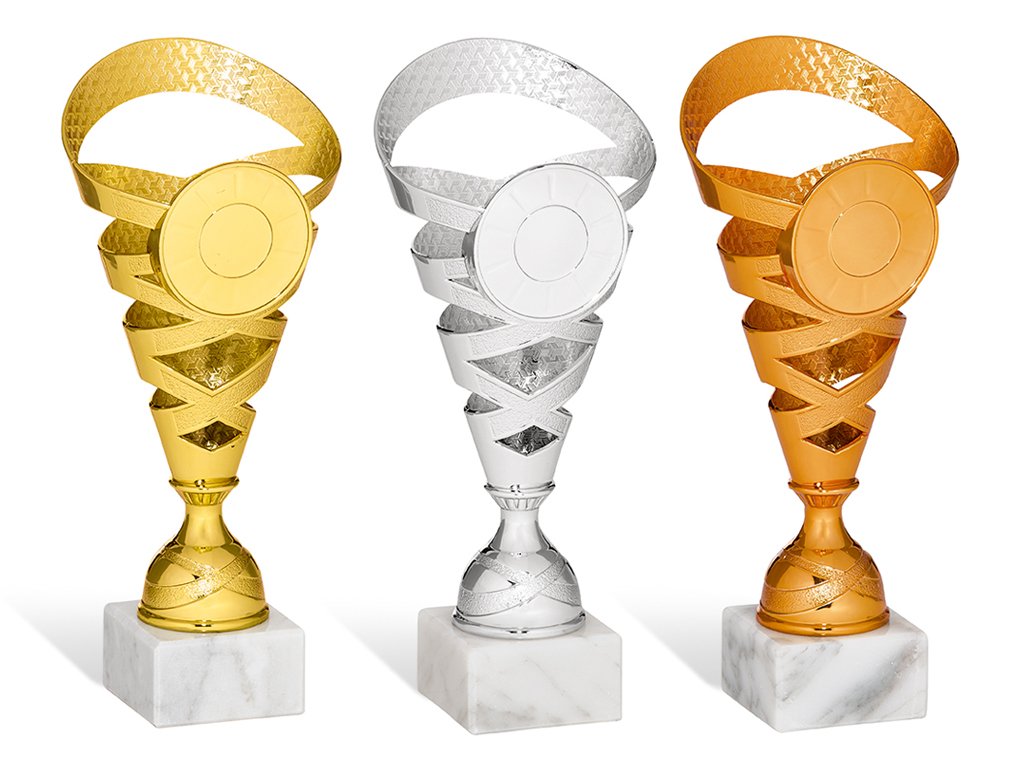 Zlatý, strieborný a bronzový plastový pohár s motívom hviezdy na mramorovom podstavci na ktorý je možné umiestniť štítok s textom. Na pohár je možné doplniť emblém o Ø 25 mm.