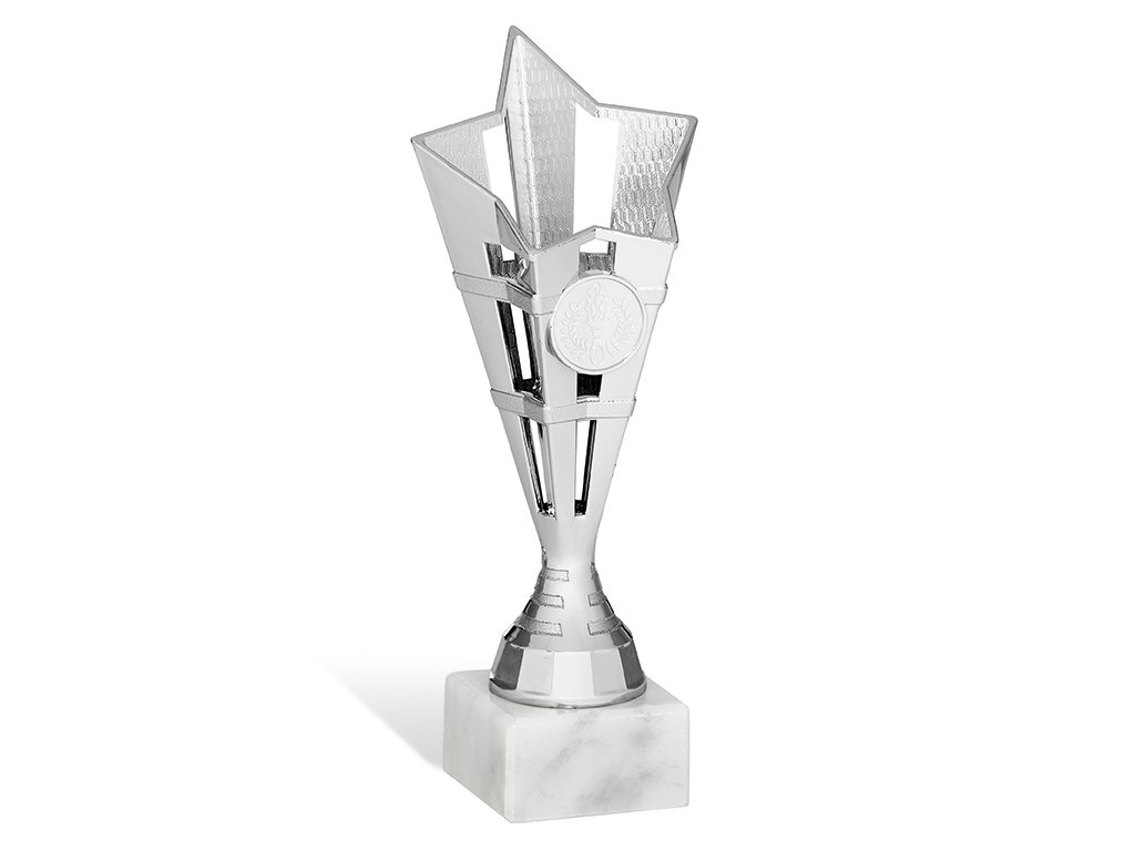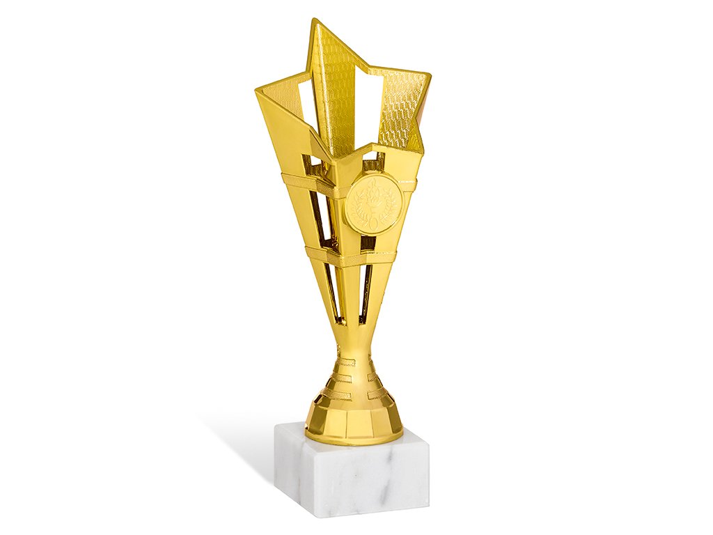Zlatý, strieborný a bronzový plastový pohár s motívom hviezdy na mramorovom podstavci na ktorý je možné umiestniť štítok s textom. Na pohár je možné doplniť emblém o Ø 25 mm.