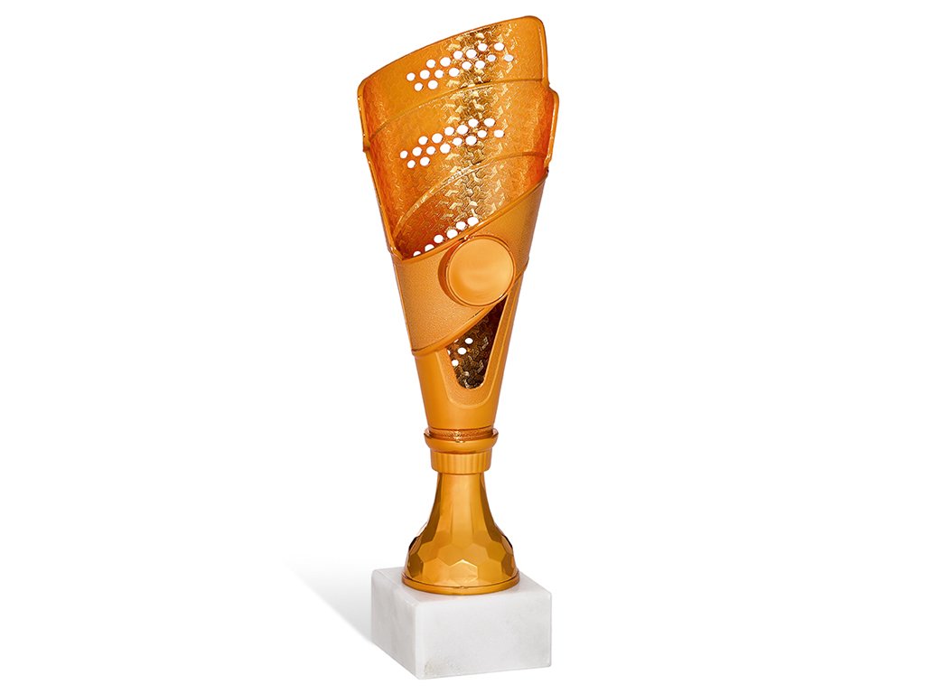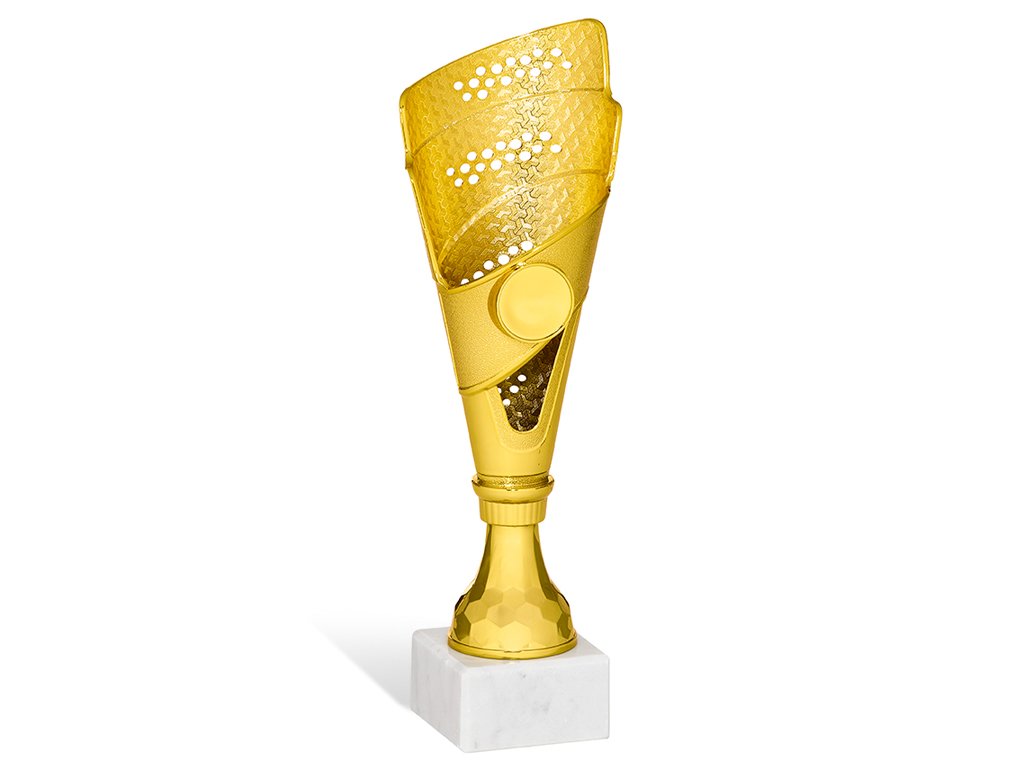Zlatý, strieborný a bronzový plastový pohár na mramorovom podstavci na ktorý je možné umiestniť štítok s textom. Na pohár je možné doplniť emblém o Ø 25 mm.