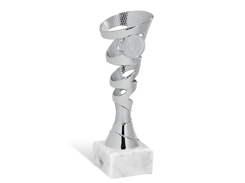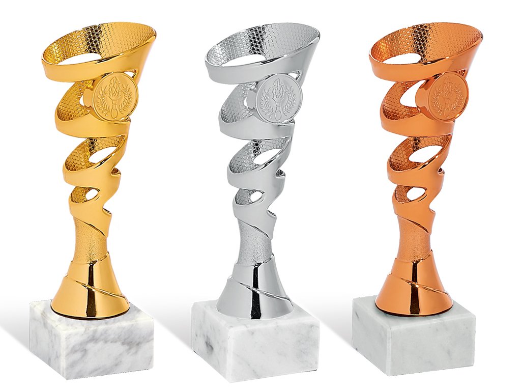 Zlatý, strieborný a bronzový plastový pohár na mramorovom podstavci na ktorý je možné umiestniť štítok a emblém o Ø 25 mm.