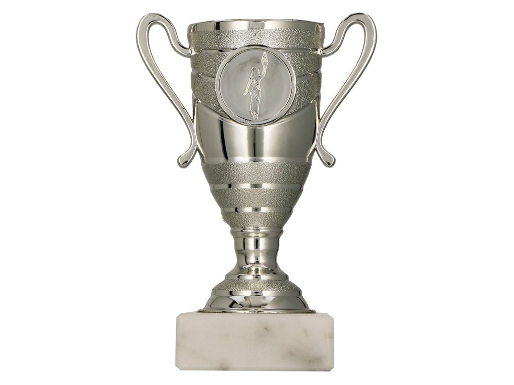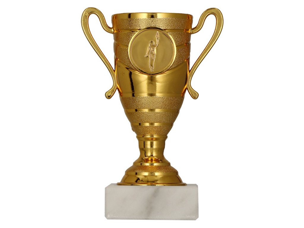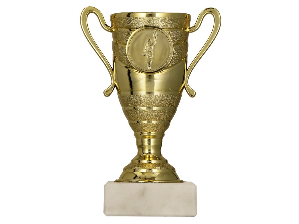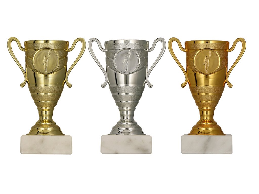 Zlatý, strieborný a bronzový plastový pohár na mramorovom podstavci na ktorý je možné umiestniť štítok a emblém o Ø 25 mm.
