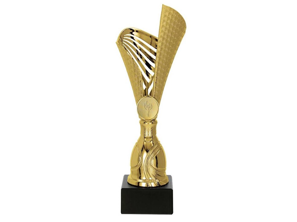 Zlatý plastový pohár na mramorovom podstavci na ktorý je možné umiestniť štítok a emblém o Ø 25 mm.